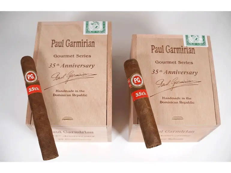 Paul Garmirian Inc. is celebrating the 35th Anniversary of PG Cigars with the release of the PG 35th Anniversary in 2 sizes: Connoisseur 6 x 52 and Super Robusto 5 x 54.