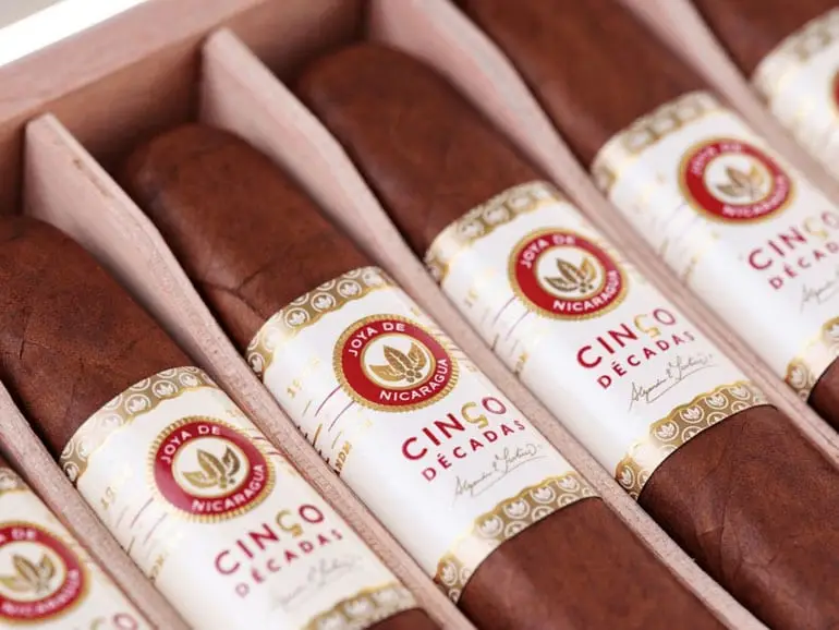 Commemorating the resiliency of Joya de Nicaragua thirty five years ago, the company introduces Cinco Décadas El Embargo, a Limited Edition 152 x 60 box-pressed gigante, with only 500 boxes of 10 cigars produced.