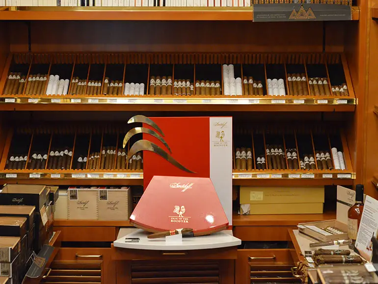 Literally across the road, an elegant, wood-paneled walk-in humidor and lounge featuring images of the late, great Zino Davidoff awaits at the Davidoff lounge in the Peninsula Hotel. Our biggest clients have been coming to this lounge for a long time, while 30-some-things are a growing market,” states Davidoff retail manager Anita Ma, while enjoying a Davidoff Escurio. She explains the identification of this 30-to-35 age bracket, “They have finished their studies, started working, and have a growing disposable income to explore cigars.”Davidoff lines such as Year of the Rooster, 702 and local editions are very popular as gifts | Photo: Samuel Spurr
