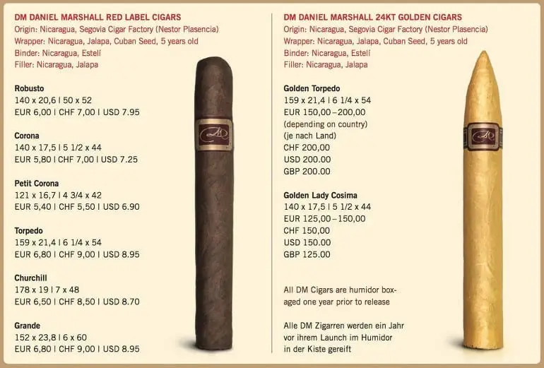 Of course, Daniel Marshall also offers products that every-one can afford and refers to his cigar line as the DM Red Label. This is available in five formats costing between US$4 and $8.